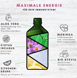 Die beiden Aloe-Säfte zählen zu den hochwertigsten am Markt, denn sie bestehen aus 100 Prozent frisch gepresstem Direktsaft, nicht aus Pulver oder rekonstituierten Konzentraten. Dadurch bleiben die natürlichen Pflanzenstoffe in ihrer ursprünglichen Form erhalten.
